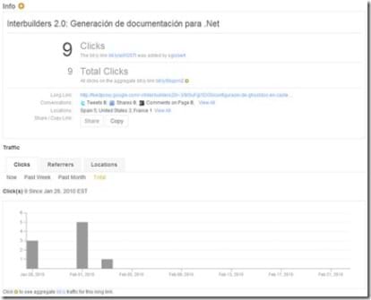 Una vez configurado Twitterfeed, empezarán a aparecer nuestros posts en ambas redes sociales, y por tanto, en Bit.ly aparecerán las estadísticas de los enlaces generados: